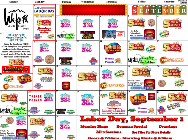In the last year, more than $11,000,000 in CASH has been paid out to more than 20,000 lucky Bingo game winners – including over $245,000 to one player in one game - you could be next! Come and experience Bingo at its finest and find out why We-Ko-Pa Casino Resort is the Valley’s FAVORITE Bingo Hall and the BEST value for your money!