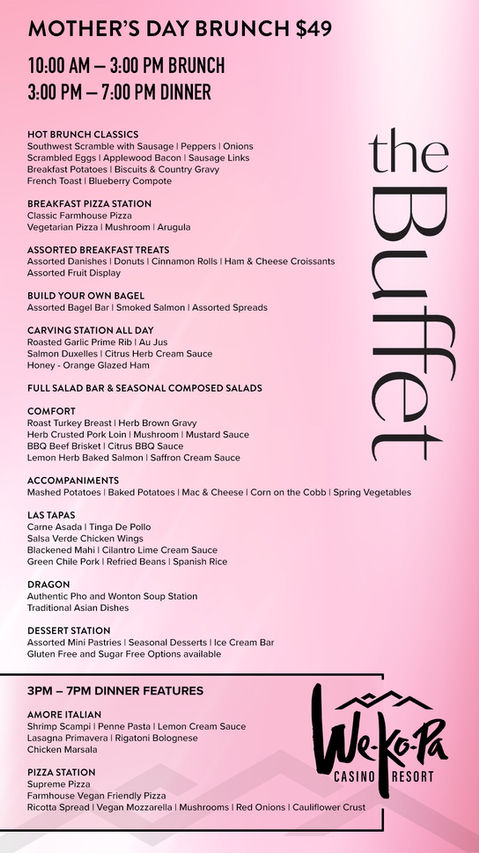 The Buffet is proud to feature four different, One Price, all-you-can-eat dining stations. Come enjoy our cutting-edge buffet with amazing foods from around the world. Enjoy our delicious salad, soup, and artisan bread stations. To finish your evening, try our beautiful selection of pastries, cakes, pies, and ice cream...Bon AppétitBe sure to get your Fortune Club Card for exclusive promotions and discounts! The card is free, so sign up today and save!