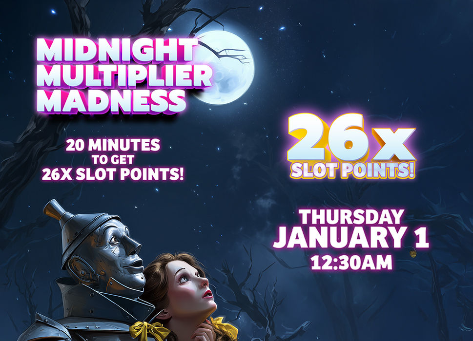 • After ringing in the new year, guests can activate their multiplier at the kiosk. They will have 20 minutes to get 26X the points. *Point restrictions may apply